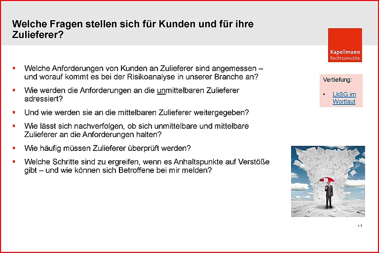 Haben Sie unser Monatsbriefing verpasst, sind aber dennoch an der Präsentation interessiert? Hinterlassen Sie uns einfach Ihre Kontaktdaten per E-Mail unter akademie[@]kapellmann.de und wir senden Ihnen die Unterlagen zu.