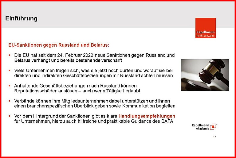 Die EU-Sanktionen gegen Russland und Belarus im Fokus des Monatsbriefings Recht im Verband